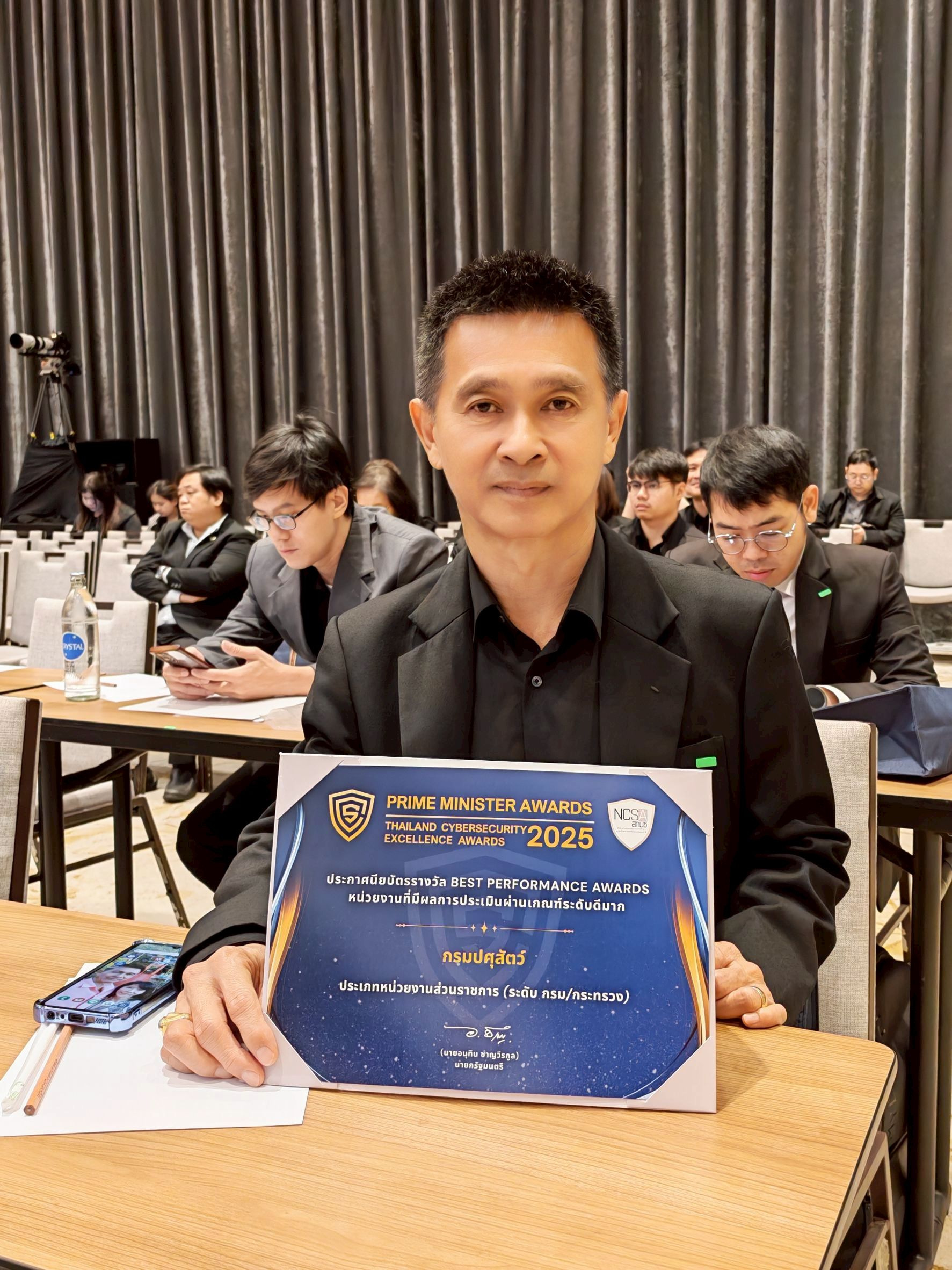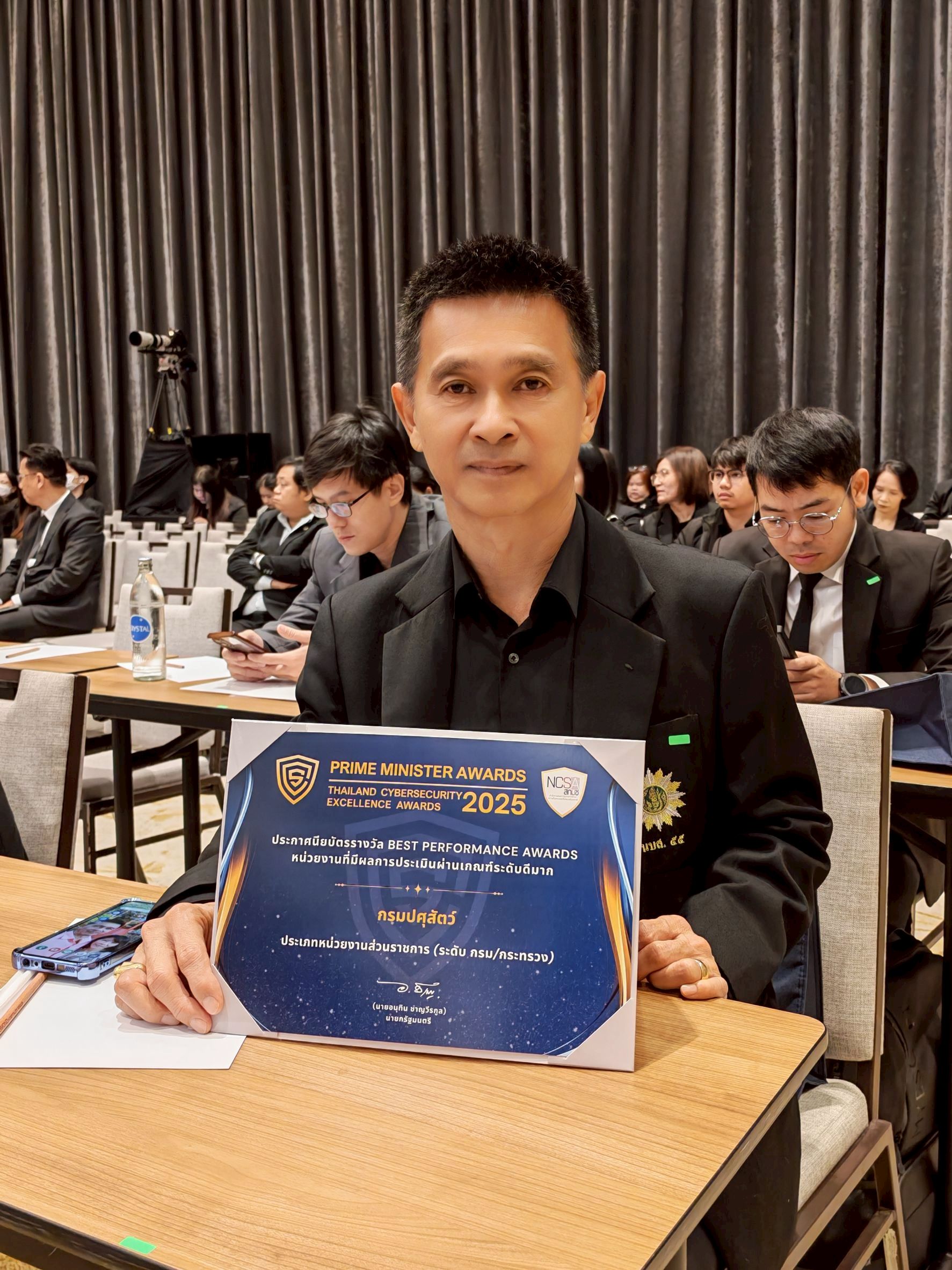 วันที่ 20 พฤศจิกายน 2568 ศูนย์เทคโนโลยีสารสนเทศและการสื่อสาร กรมปศุสัตว์ เข้าร่วม พิธีมอบรางวัล Prime Minister Awards Thailand Cybersecurity Excellence Awards 2025