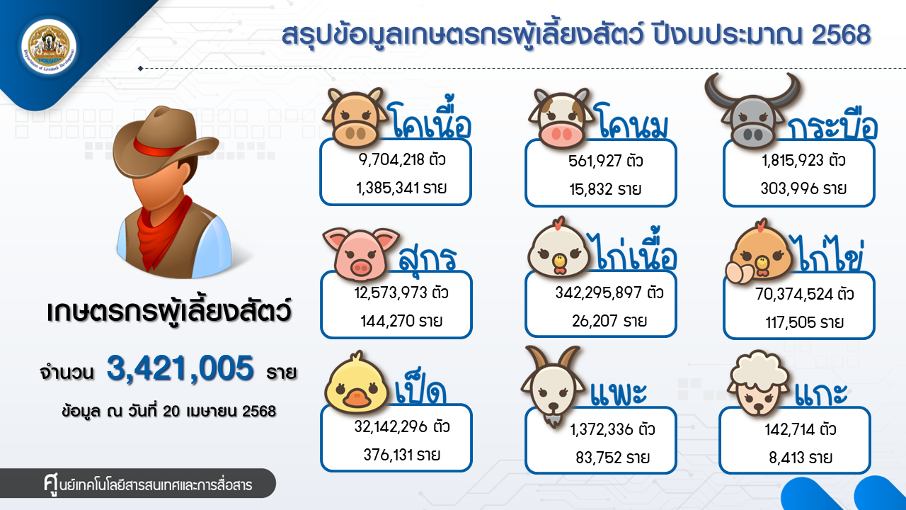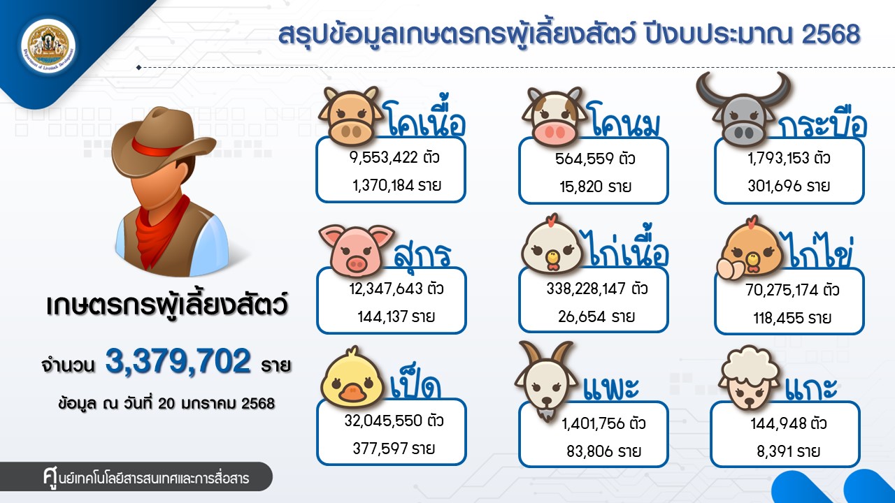 สงวนลิขสิทธิ์ พ.ศ. 2568 ตามพระราชบัญญัติลิขสิทธิ์ 2537 พัฒนาเว็บไซต์โดย ศูนย์เทคโนโลยีสารสนเทศและการสื่อสาร กรมปศุสัตว์